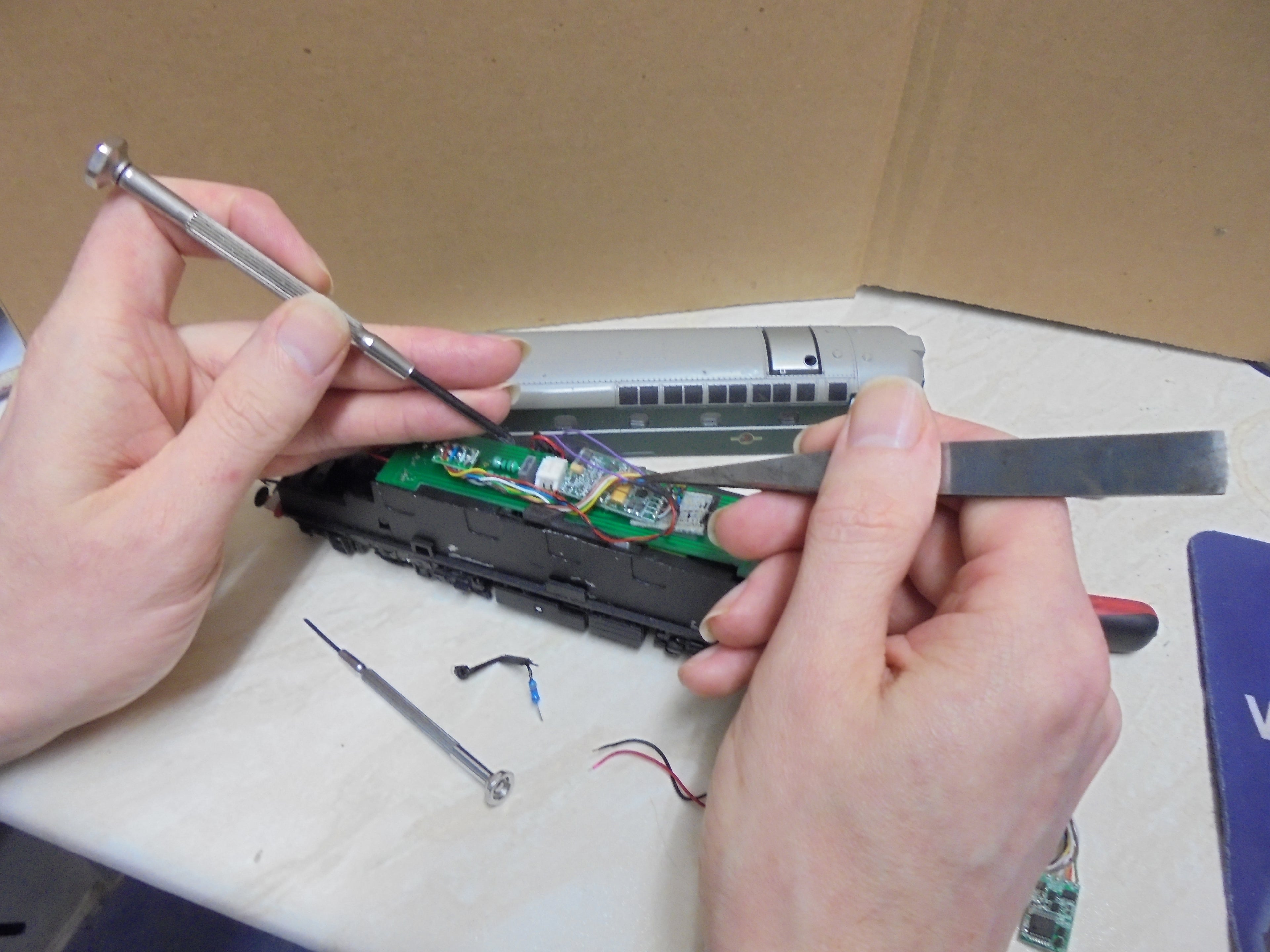 The Portsmouth Model Shop have just fitted DCC sound to my Princess Coronation OO loco. It was a tricky job as the engine was not DCC ready, but I am very pleased with the result; the sound is amazing and the cost of fitting very reasonable.